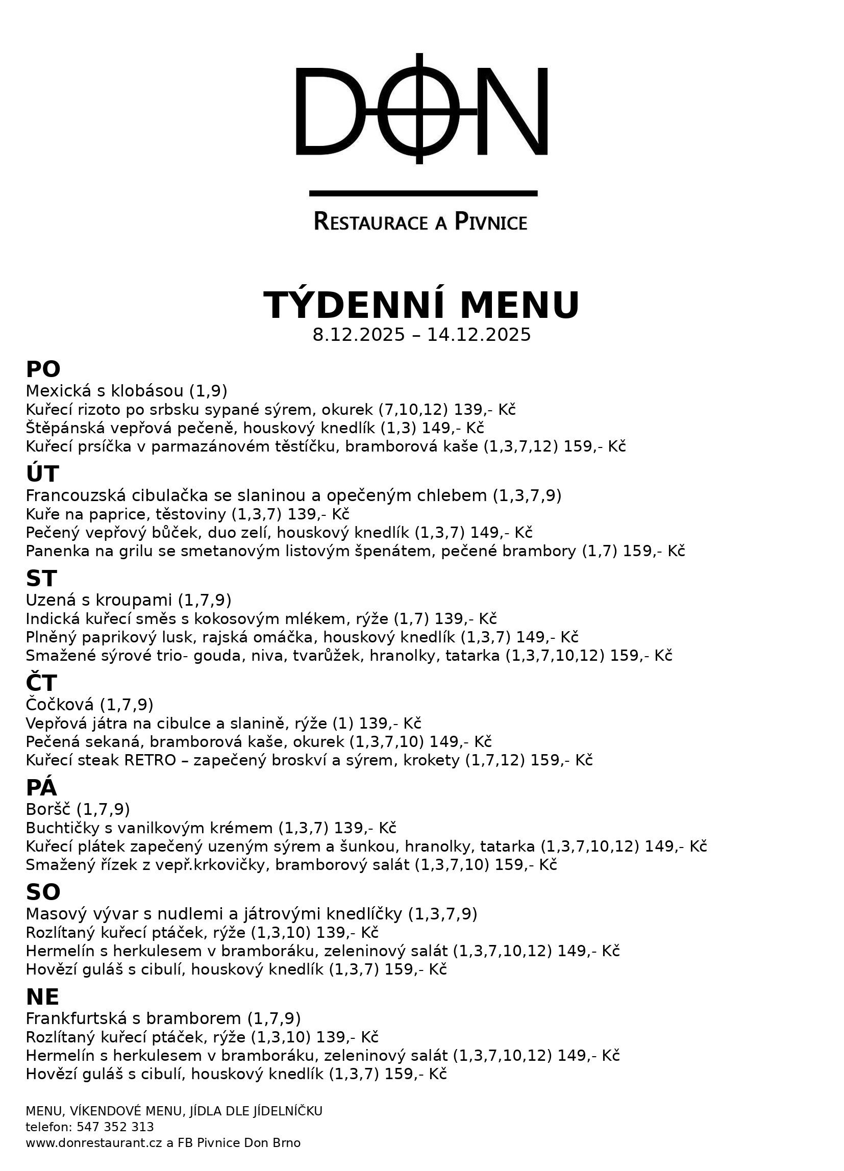 Týdenní Menu